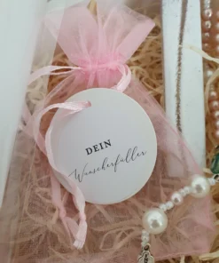 bestehend aus Schutzengel, Rosenkranz, Kreuz, Wunscherfüller Geldbeutel und Glückslicht Stabkerze