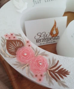 Kerzengröße: 21x15x8cm oval Die Kerze verfügt über 2 Teelichteinsätze Sie besteht aus Wachs mit eingearbeiteten Echtholz Verzierung besteht aus aufwendiger Acrylmalerei bis ins feinste Detail