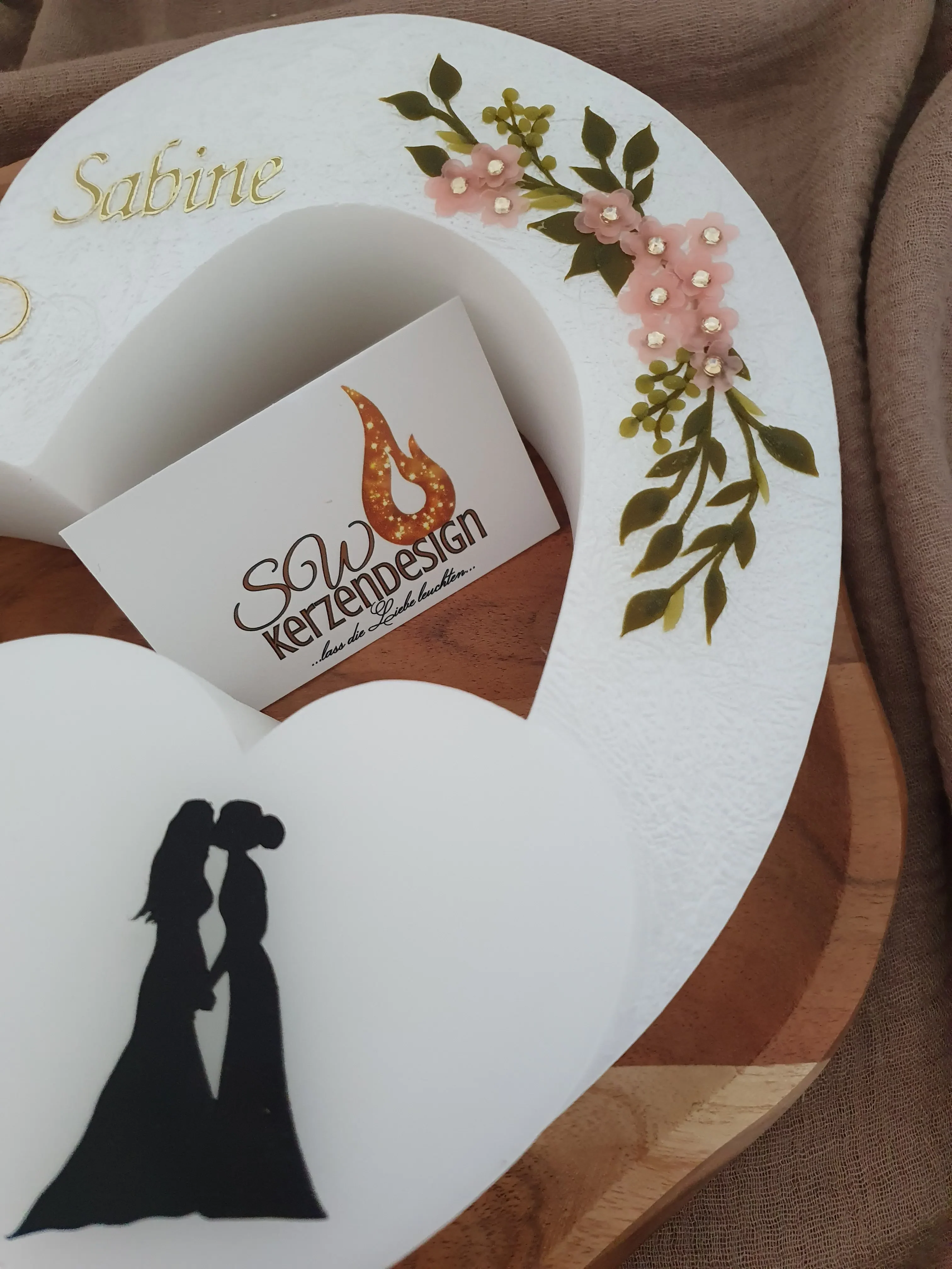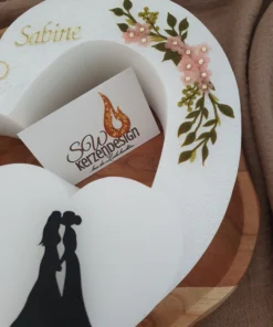 Hochzeitskerze Doppelherzform „Silhouette mit Blumen“