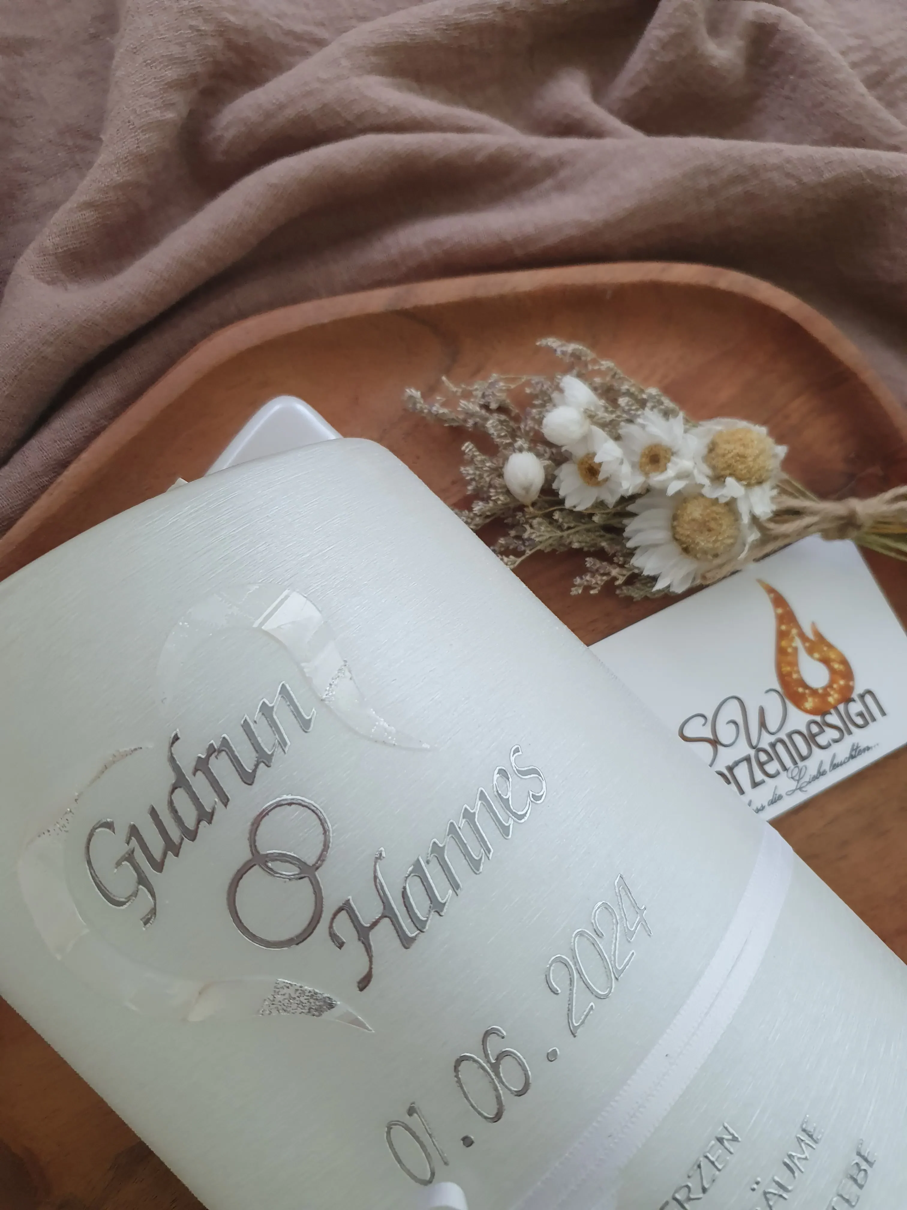Kerzengröße: 20,5x24,5cm Oberfläche perlmut gelackt Die Kerze verfügt über 2 Teelichteinsätze