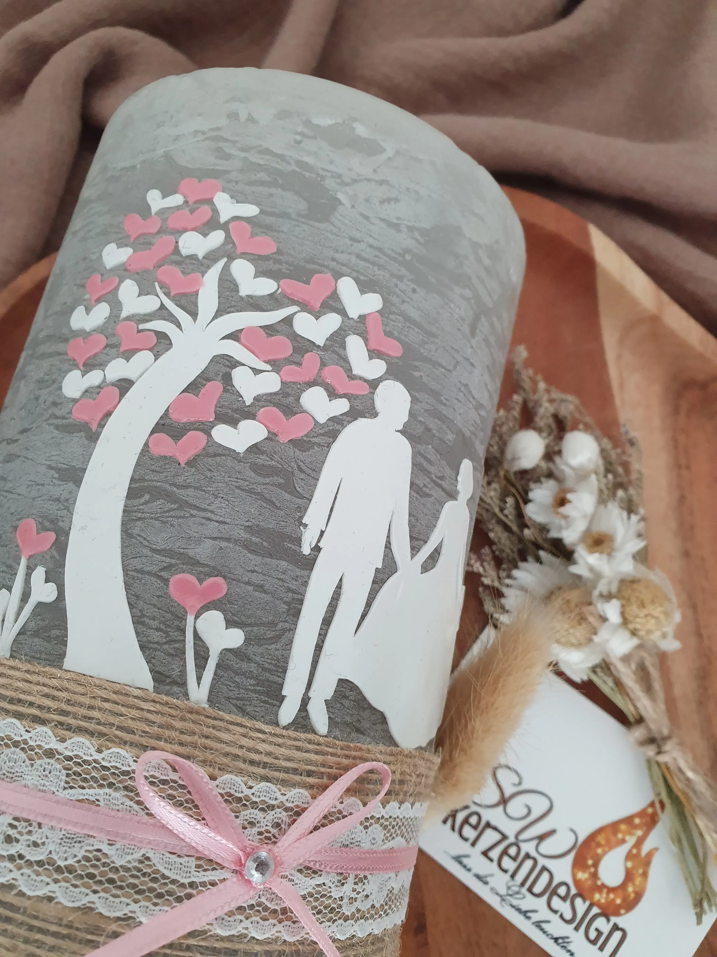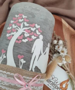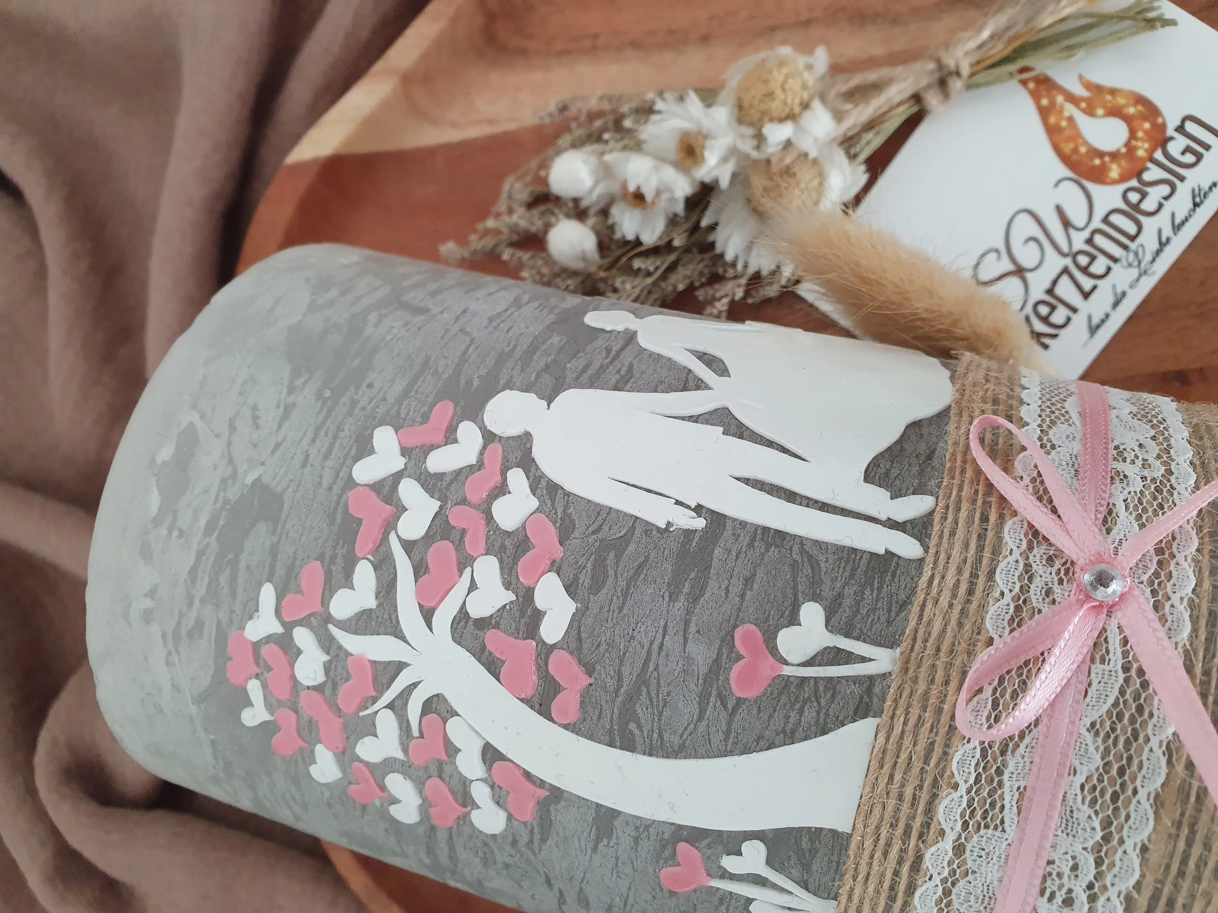 Hochzeitskerze rustik „Lebensbaum mit Silhouette“