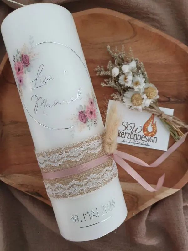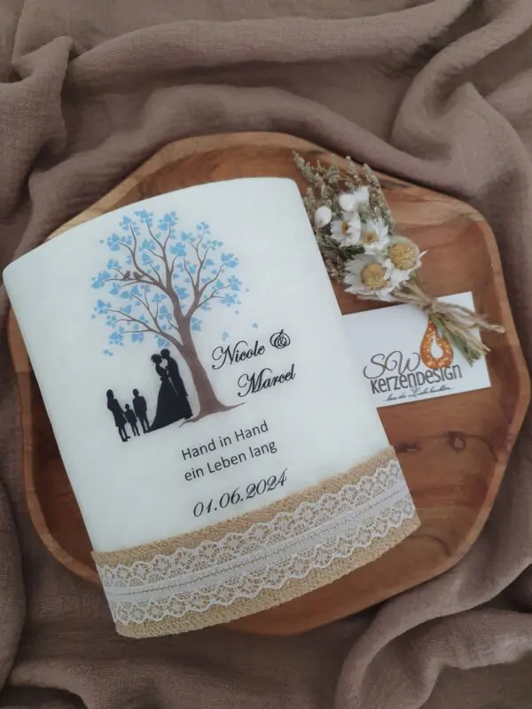 Kerzengröße: 21x15x8cm oval Die Kerze verfügt über 2 Teelichteinsätze Sie besteht aus Wachs mit eingearbeiteten Echtholz Verzierung besteht aus aufwendiger Acrylmalerei bis ins feinste Detail