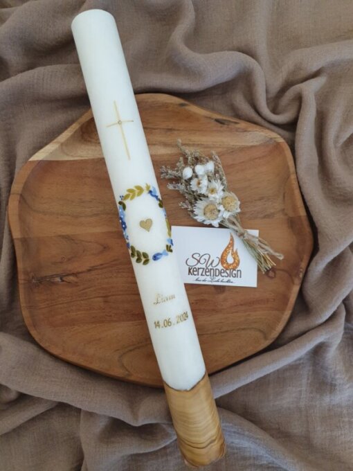 Taufkerze „Blätterkranz“ HOLZ